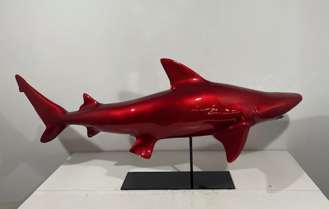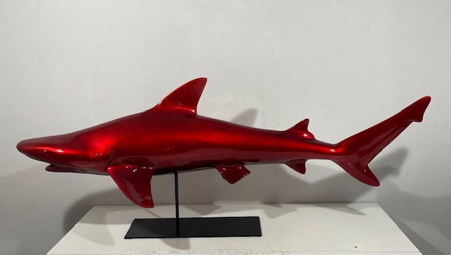 Originale et authentique sculpture méticuleusement conçue en résine à structure lisse représentant un requin.
