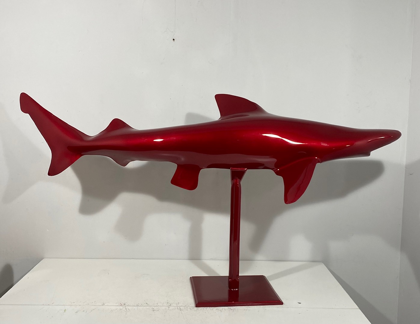 Exceptionnel demi requin en résine personnalisé par une peinture candy rouge.
